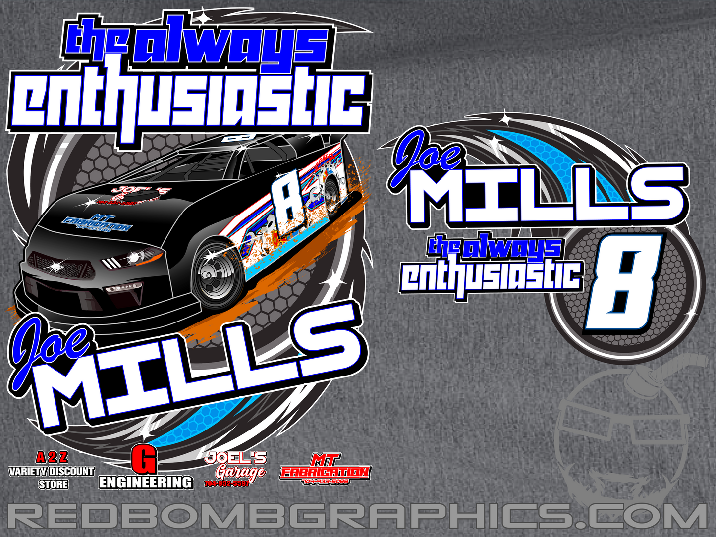Our Shirts have been completely customized to each driver and team. Representing your team and sponsors in style. No Art fees, No set-up fees and no minimum shirt orders. Making it easy for everyone to show off their team colors.